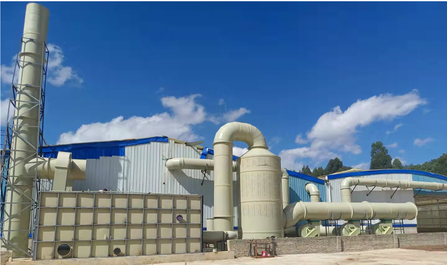 为了削减有机肥生产过程中臭气的浓度,避免所产生的异臭味废气对设备的腐蚀及对员工、生产环境、周围大气环境等造成一定的影响。根据要求,须对产生的恶臭气体进行除臭处理,以确保处理后的尾气达标后排放。云南鹏程生物有机肥有限公司经过详细的市场调研和比选,于2021年6月与我司签订设备供货安装、环保验收EPC总包合同,经公司积极筹备材料,构建项目组织,在7月12日进场施工,8月10日调试完成,历时一个月,由我司承建的云南鹏程生物有机肥有限公司臭气治理项目顺利完工。施工期间克服雨季施工、高处作业等不利因素,严格执行重安全、保质量、抓进度行业标准,高标准、严要求打造精品工程。