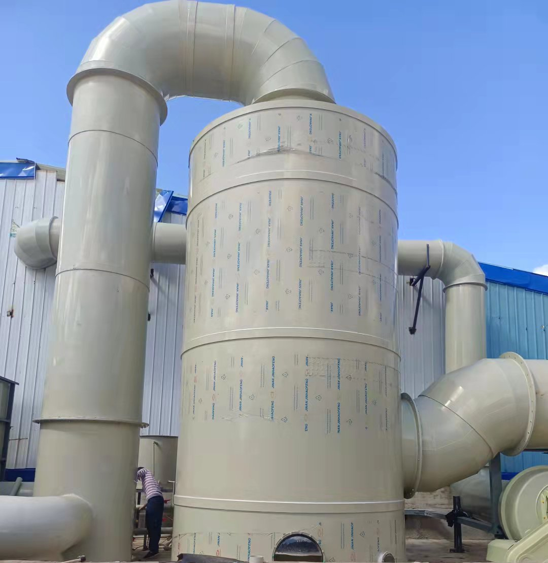 经收集的恶臭气体进入于洗涤塔,预洗涤塔采用填料塔,增加气液接触面积和接触时间,处理效果更佳。在预洗涤塔内,恶臭气体与雾化工艺水逆流接触,去除部分粉尘,易溶、可溶性物质,并被加湿后进入生物滤床进一步处理。同时配备除臭液投加系统,用于分解废气中恶臭物质。
