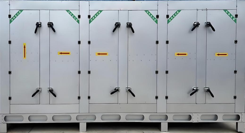 活性炭吸附装置由活性炭吸附箱、蜂窝活性炭、吸附风机、控制系统组成。若配套在线脱附功能时,还需配套气动吸附风阀、气动脱附风阀、电动脱附总阀(调节型)、电动补冷调温阀(调节型)、电动排放风阀(调节型)、脱附风机等。