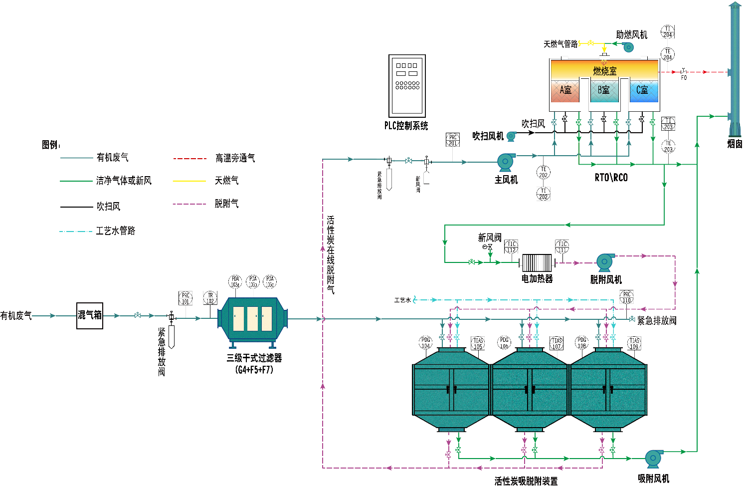 (1)适用于常温、低浓度、大风量的有机废气净化;