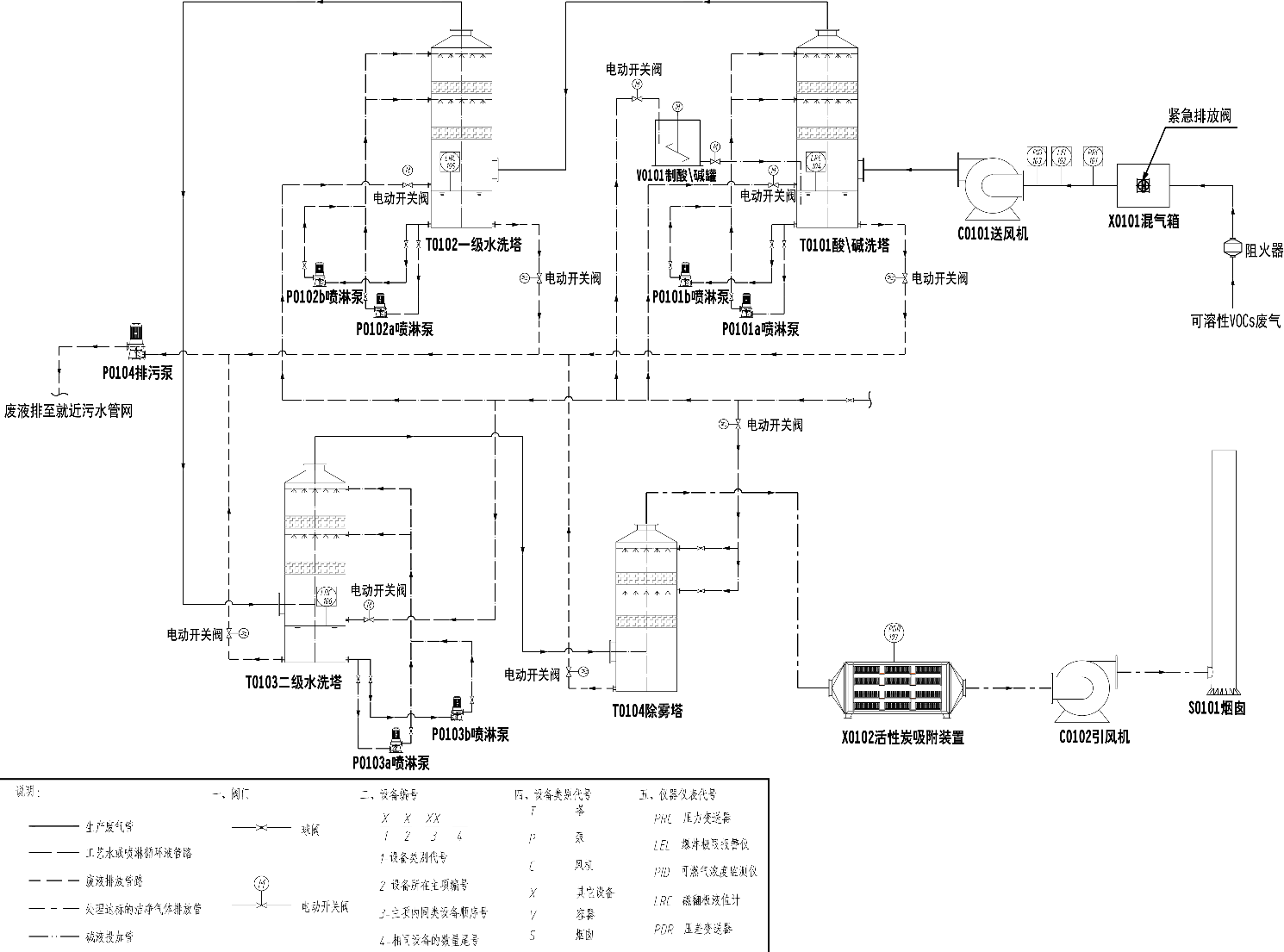 (4)系统安全可靠,配置有LEL浓度监测仪、压力变送器和报警装置,并设置了阻火器、消防喷淋装置。