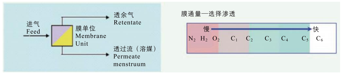 丙酮、甲醇、乙醇、二氯甲烷、乙酸乙酷、丁醇等在各自分压差的驱动下在膜中溶解、扩散、透过速率要比氮气、空气快十倍到几十倍,所以在混合气体透过膜组时在渗透侧形成高浓度溶媒渗透流,在高压渗余侧形成氮气、空气富集的透余气流,从而完成气体分离。
