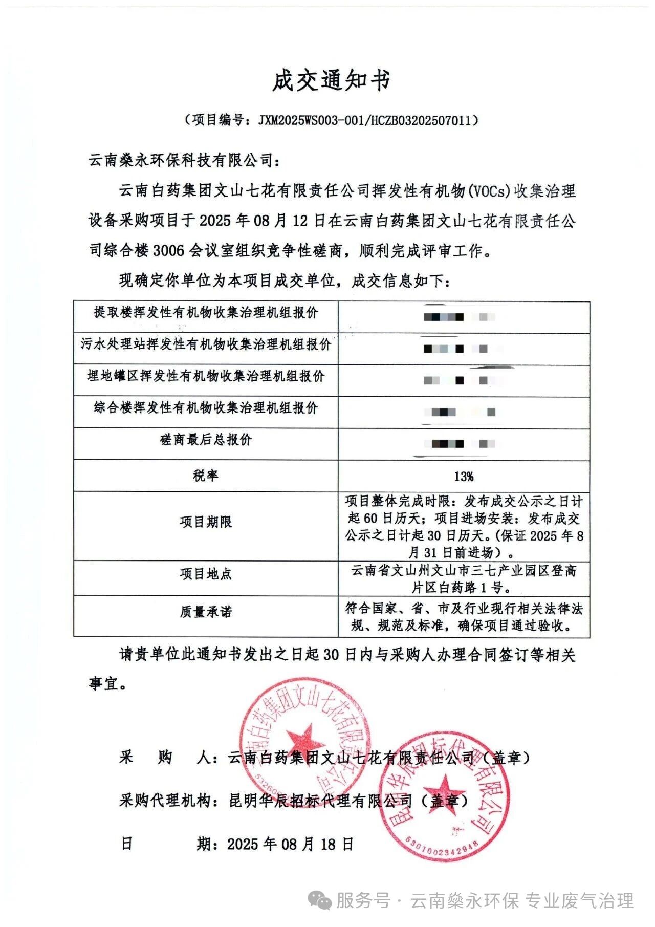 云南燊永环保中标文山七花公司挥发性有机物VOCs收集治理EPC总承包